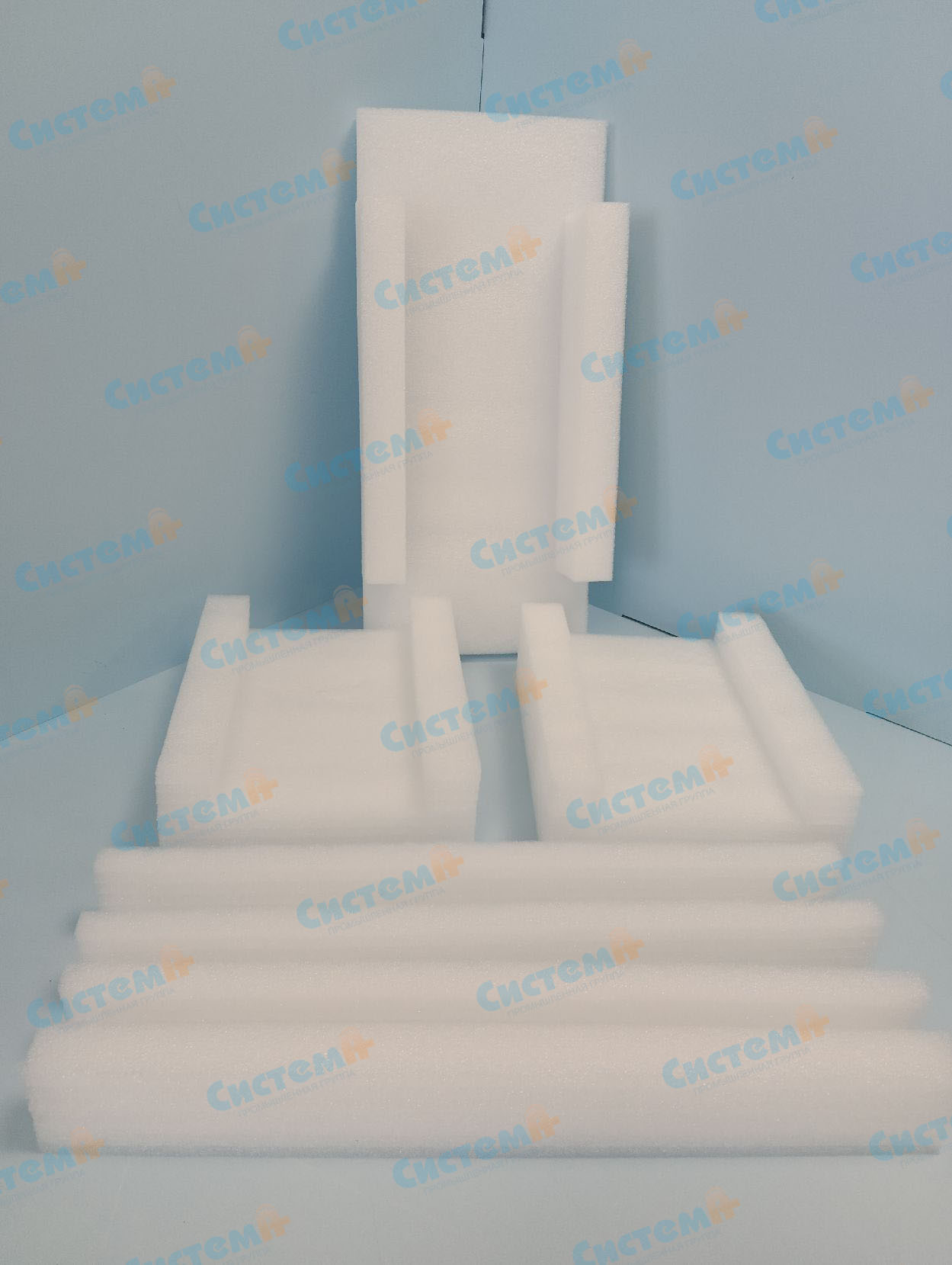 Мы изготовили несколько вариантов упаковки: накладки, профили для торцов, вкладыши. Упакованная в них продукция будет помещаться в картонные короба.